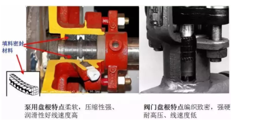盤根通常由較柔軟的線狀物編織而成,通過截面積是正方形的條狀物填充在密封腔體內,靠壓蓋產生壓緊力,壓緊填料,使填料壓緊在密封表面(軸的外表面和密封腔)上,產生密封效果的徑向力,達到密封作用。
